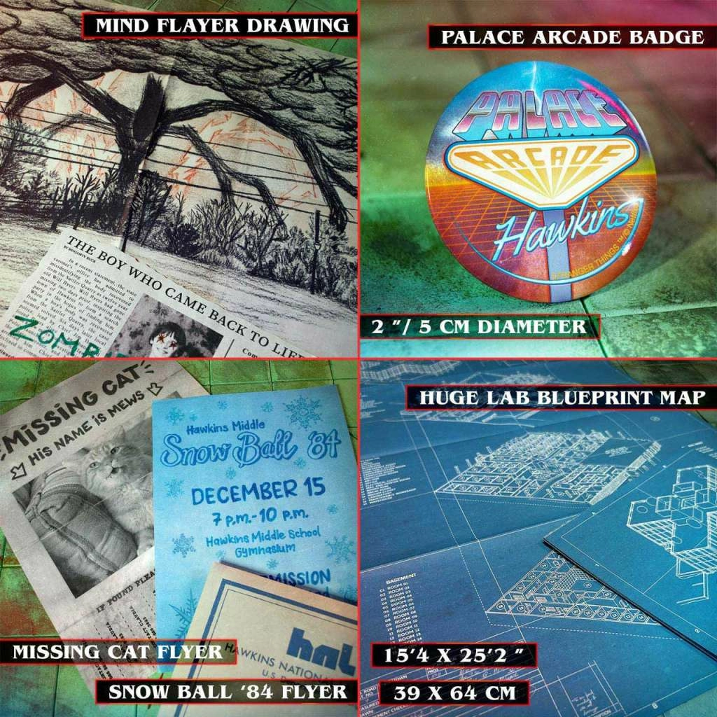 - Souvenirs Inestimables : Des cartes, photos, affiches et autres éléments qui vous transporteront directement dans l'univers de Stranger Things.