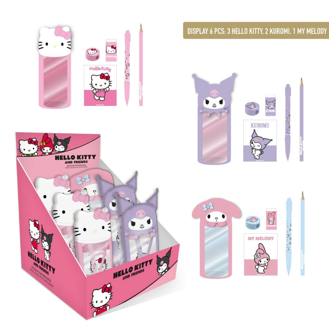 Hello kitty & friends - display de 6 sets de papeterie 6pc
