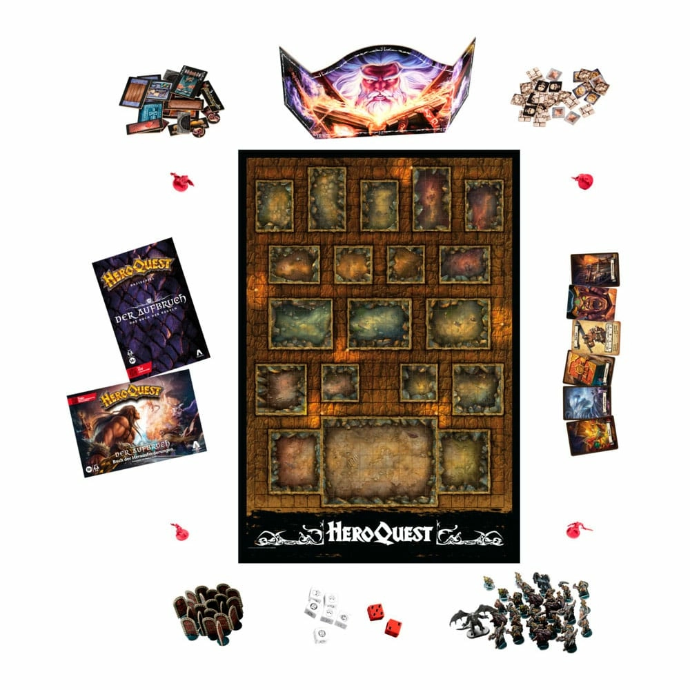 L'aventure commence ici ! Le jeu d'aventure fantastique HeroQuest First Light suit le parcours de 4 héros dans des quêtes où ils découvrent des trésors, explorent des environnements immersifs et combattent les forces du mal contrôlées par Zargon, le maître de jeu. On parcourt un plateau réversible qui change au fur et à mesure qu'on explore chaque donjon. Les joueurs se montreront-ils dignes du titre de héros ? Les joueurs vont pouvoir s'immerger dans une aventure fantastique grâce aux superbes illustration et aux figurines détaillées (plus de 100), dont un dragon, 4 figurines de héros et 67 pions en carton colorés. Avec ses 10 quêtes et l'option de créer ses propres quêtes, ce jeu de plateau HeroQuest permet de rejouer à l'infini. C'est un super cadeau pour les fans de jeux coopératifs, de jeux de plateau fantastiques et de jeux de stratégie pour adultes et ados. Il suffit de réunir quelques amis pour passer une super soirée à combattre le mal. Pour 2 à 5 joueurs, à partir de 14 ans.Inclut le livre des quêtes contenant 10 quêtes uniques, le livre des règles du système de jeu, un plateau réversible, l'écran du maître de jeu, 4 figurines de héros (1 barbare, 1 nain, 1 elfe, 1 enchanteur), 1 figurine de dragon, un bloc de feuilles de personnage, 31 pièces de monstre, 15 pièces de mobilier, 41 tuiles en carton, 21 portes de donjon, 102 cartes de jeu, 6 dés de combat, 2 dés de déplacement et 52 pions en plastique.