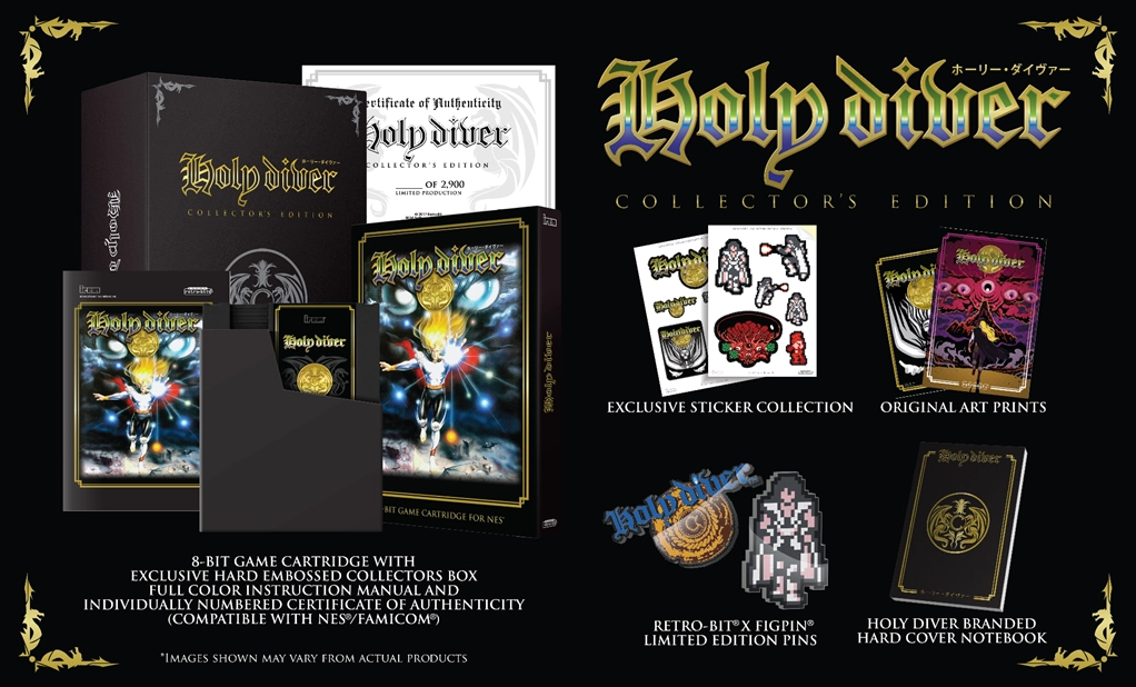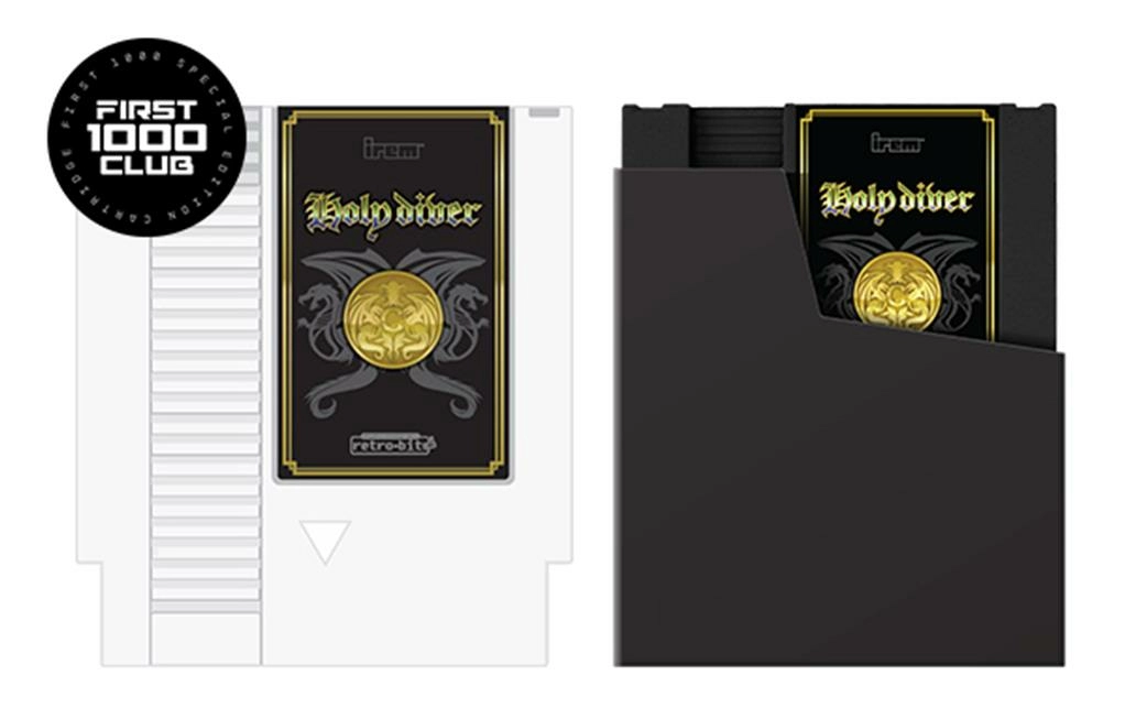 - Cartouche 8 bits Holy Diver et sa housse de protection, compatible avec les consoles NES® et Retro-Bit® d'origine