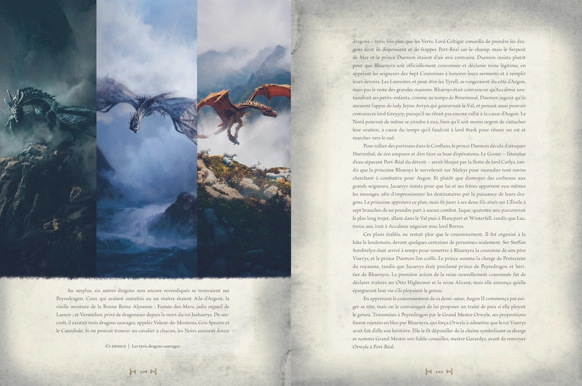 Entre grandeur et folie, voici enfin racontée l’histoire de la dynastie Targaryen, la famille la plus puissante des Sept Royaumes.Pendant des siècles, les Targaryen ont gouverné les terres de Westeros tandis que leurs dragons en possédaient les cieux. Dans cet ouvrage illustré de plus de 150 oeuvres réalisées par les plus grands maîtres de la fantasy, George R. R. Martin narre le règne de ce clan, depuis la conquête des Sept Royaumes par Aegon Targaryen jusqu’à la guerre civile connue sous le nom de « Danse des Dragons ». Un âge tissé d’alliances et de trahisons, teinté de courage et de lâcheté.Un livre indispensable pour tous les fidèles lecteurs de la saga Game of Thrones, et tous ceux qui ont découvert cet incroyable univers grâce aux séries HBO.