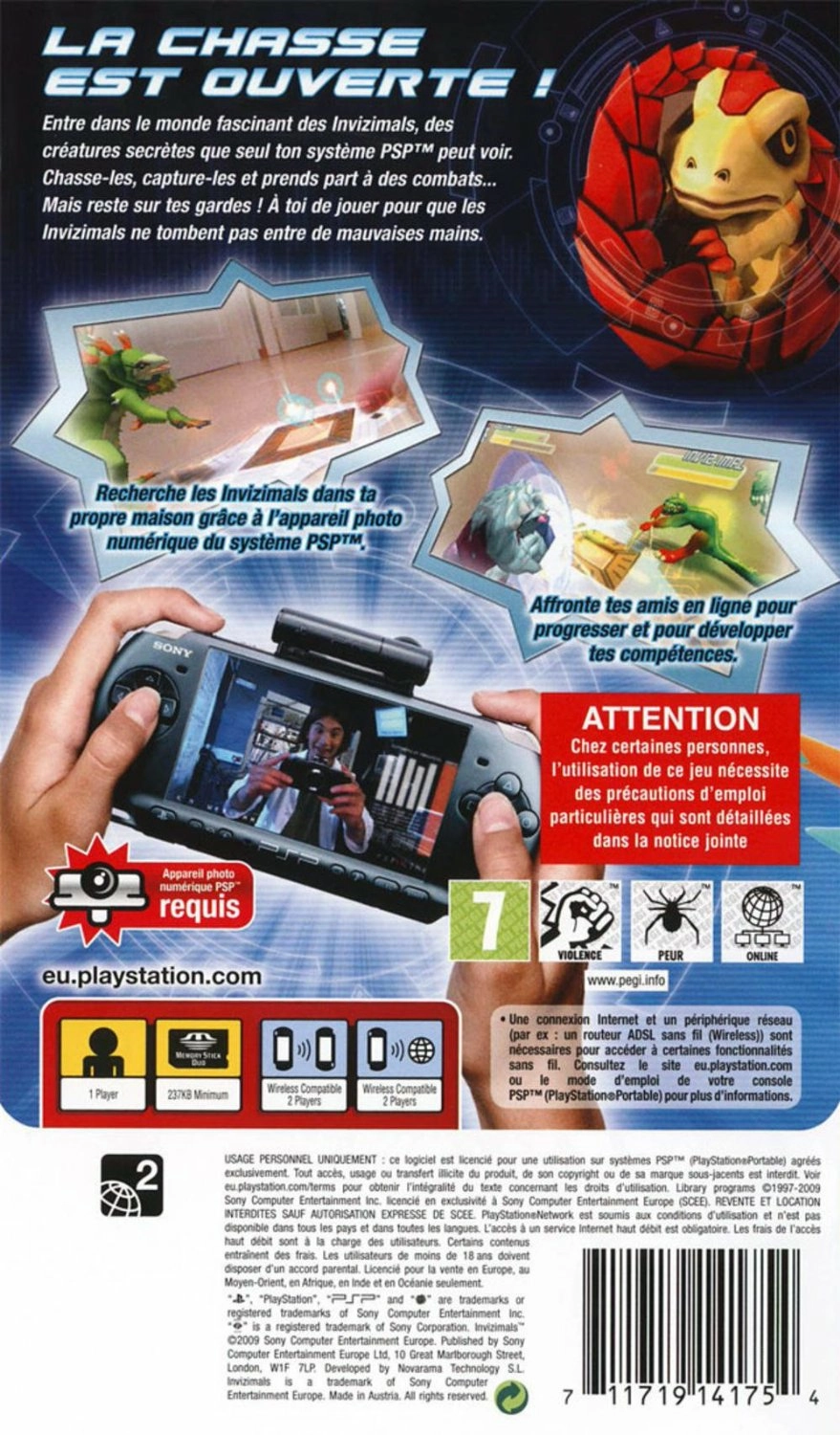 Invizimals sur PSP utilise la caméra et le micro de celle-ci pour une jouabilité originale. Cherchez les créatures avec la caméra puis capturez-les. Elles évoluent en combattant et deviennent plus fortes, vous pouvez alors affronter vos amis dans des combats sans merci.