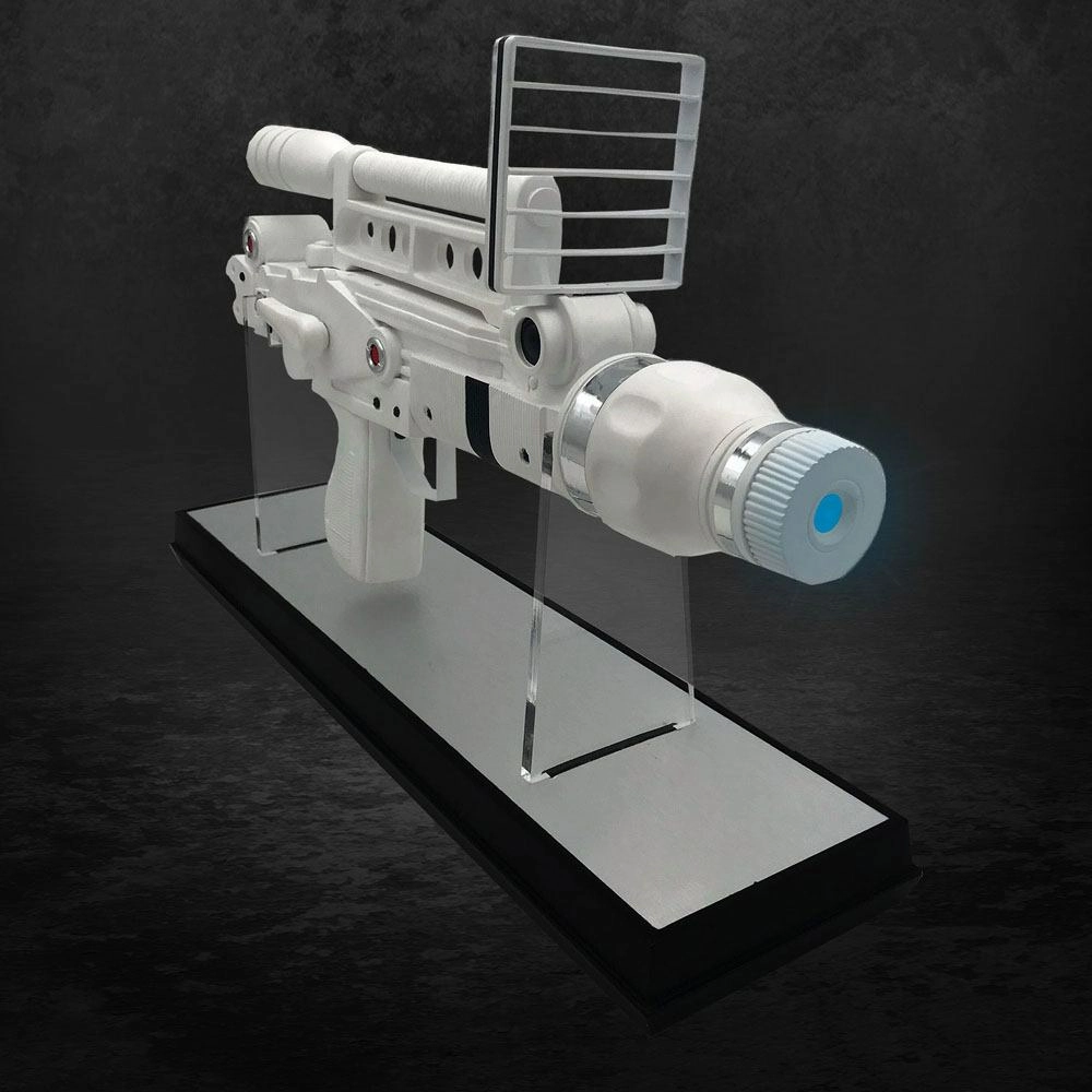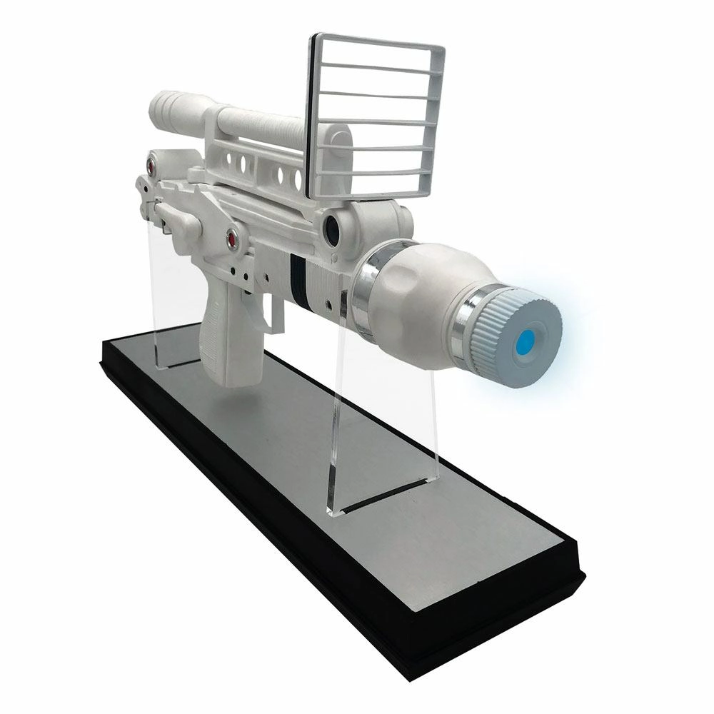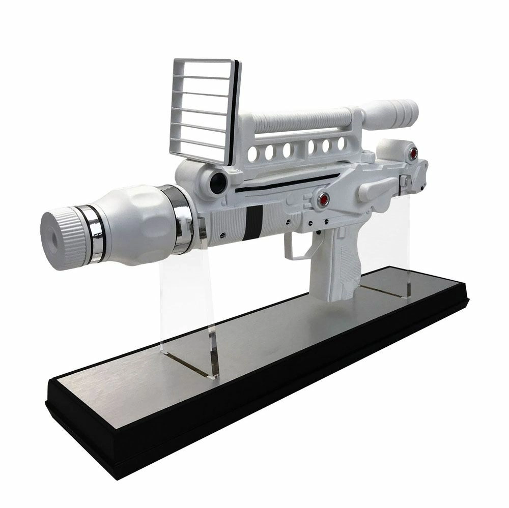 Réplique à l´échelle 1/1 du pistolet laser dans le film ´Moonraker´. Edition limitée à 750 exemplaires numérotés avec socle et certificat d´authenticité. Taille : 50 x 28 x 9 cmFonctionne avec 2 piles AAA (LR3). Piles incluses.