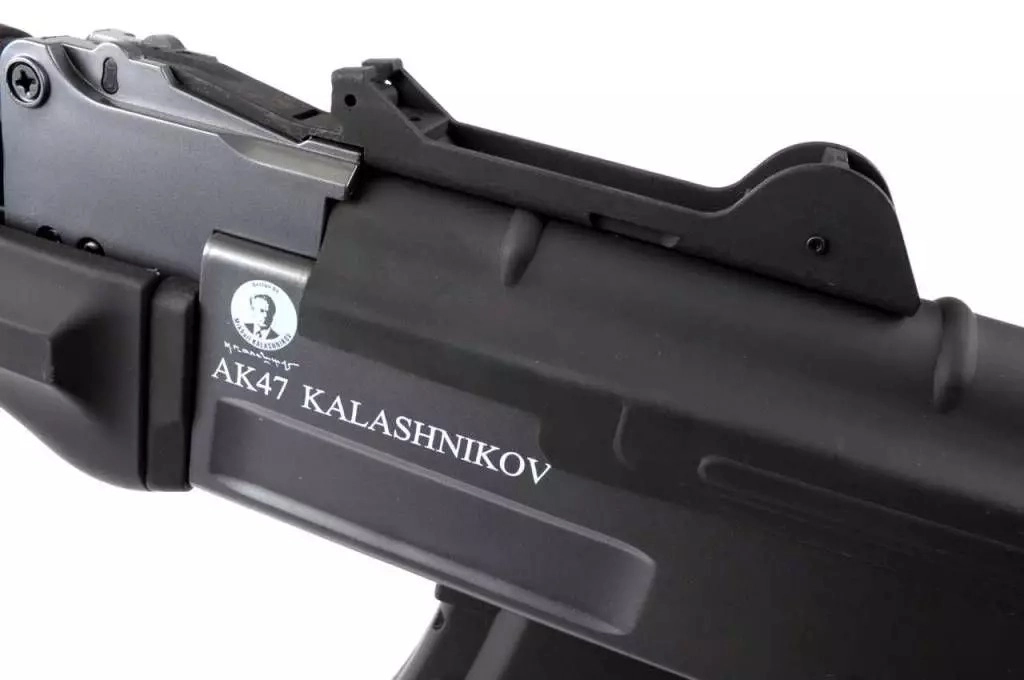 Les perfectionnistes apprécieront la présence du marquage officiel Kalashnikov peint en blanc sur le côté gauche de la réplique.