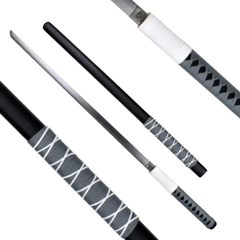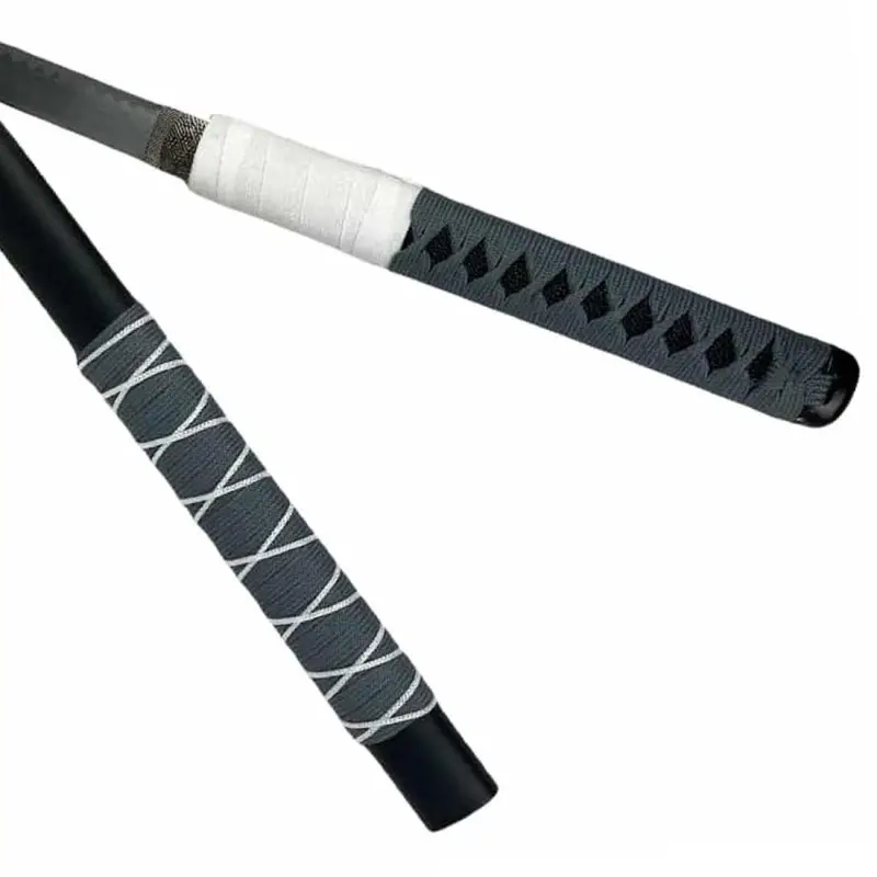 - Tsuka profilé stylé avec cordage gris et grip blanc.