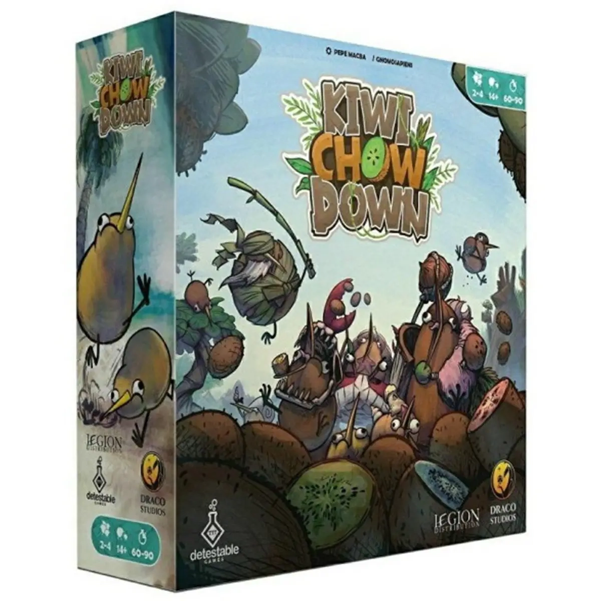 Kiwi Chow Down se joue sur quatre saisons, chacune ayant un objectif différent pour gagner des récompenses. Chaque saison comporte trois tours et vous pouvez soit construire, déplacer ou nourrir en fonction des cartes en main et de la stratégie que vous souhaitez adopter.