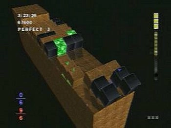 Kurushi Final sur Playstation est un jeu de réflexion dans lequel votre personnage se retrouve coincé sur une plate-forme avec des cubes qui avancent inexorablement vers lui.