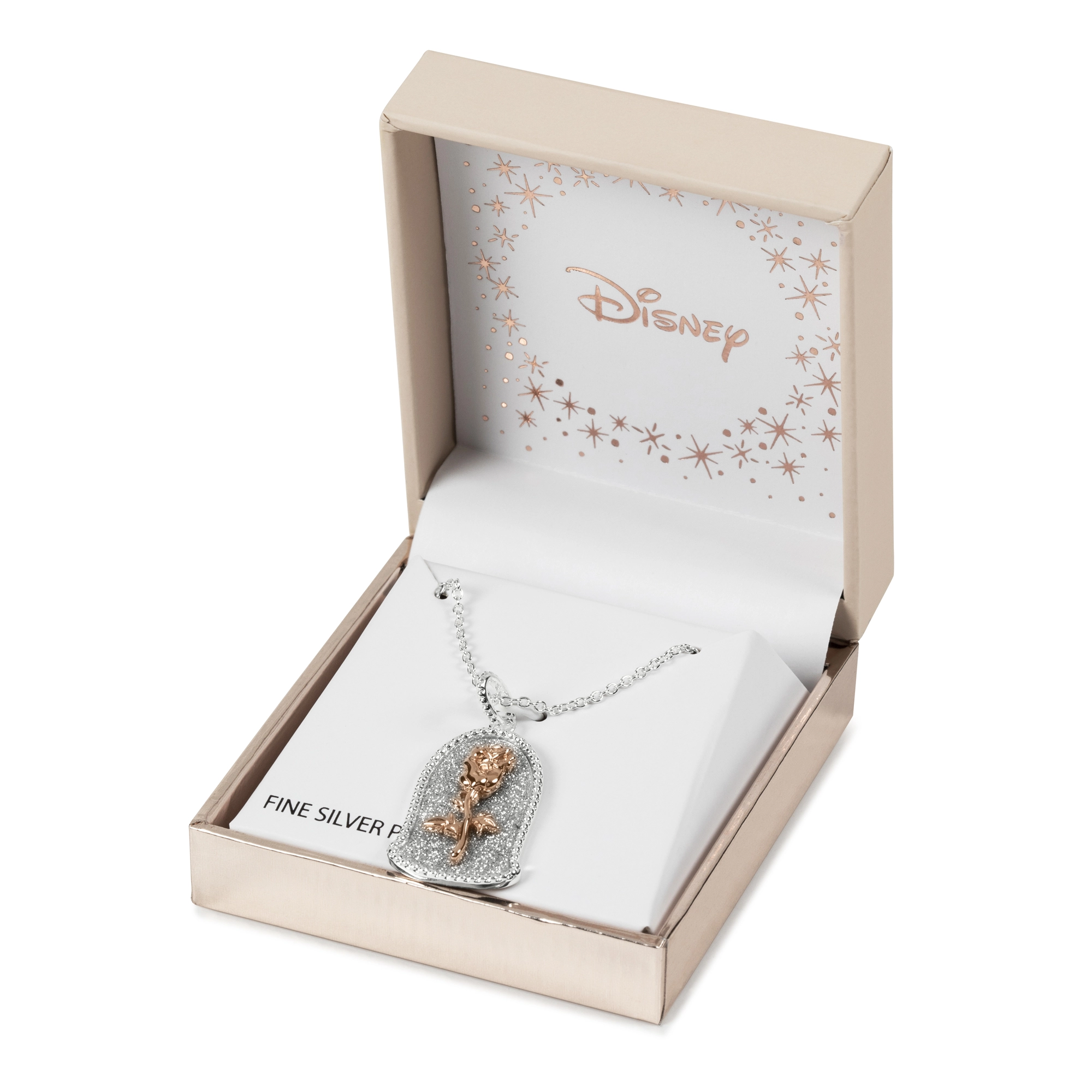 La belle et la bete - la rose - collier en laiton plaqué argent
