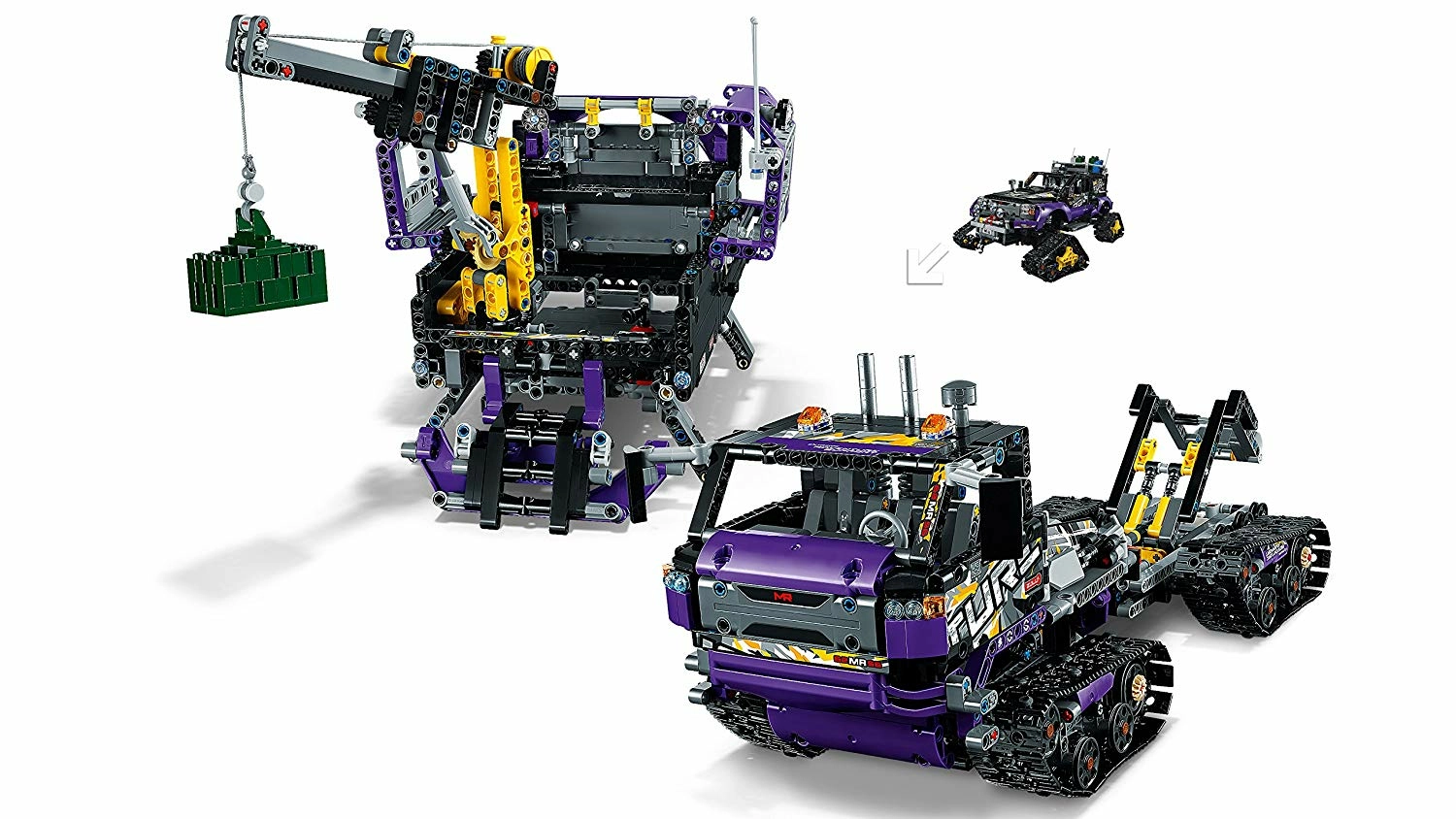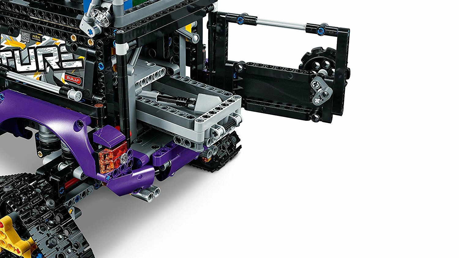 - Construis ton propre véhicule d’aventure extrême comprenant quatre chenilles hautement adhérentes avec une suspension qui fonctionne, des portes qui se soulèvent avec une fonction de marchepied qui s’abaisse, un hayon verrouillable, un treuil qui fonctionne, une direction avant, un coffre qui s’ouvre et un moteur détaillé avec des pistons mobiles