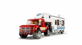 - Construisez une caravane avec une ouverture latérale, une porte qui s'ouvre, un toit frontal amovible, des meubles et un pied de support séparé ainsi qu'un pick-up équipé d'un toit amovible, d'une cabine pour figurine et d'une remorque avec attelage de caravane