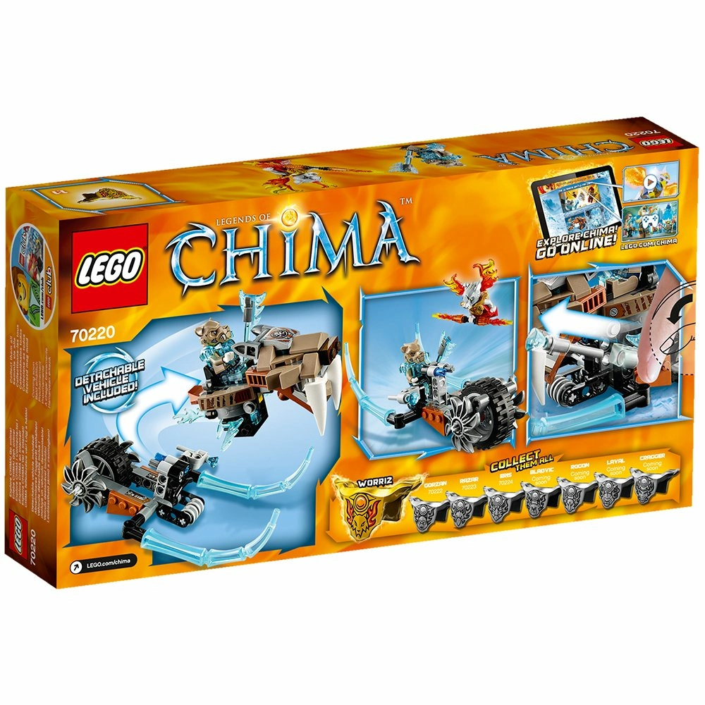 Strainor fonce dans le territoire des loups sur sa redoutable moto sabre. Cache le CHI derrière le mur et prépare -toi à poser une embuscade au guerrier tigre. Lorsque Strainor s'approche, fonce dans le combat avec Worriz et son Flame Maulor à double lame. Mais attention : Strainor peut séparer sa moto sabre en 2 véhicules géniaux ! Évite les mâchoires mordantes de son planeur tigre et évite les lames et le missile du Frost Blader. Tu auras besoin de tous tes talents pour protéger ce précieux CHI de cette menace qui rôde ! Comprend 2 figurines avec des armes assorties et un accessoire : Strainor and Worriz.