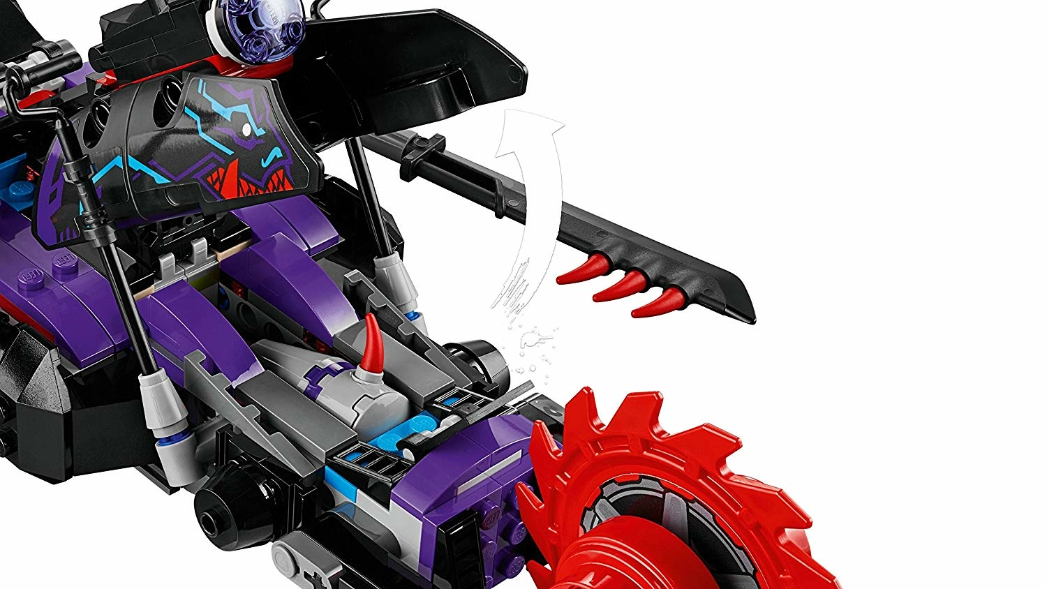 - Construisez l'hélicoptère Oni comprenant un siège pour Killow, une lame de scie circulaire avant, 2 pales dépliables, 2 skateboards amovibles et un compartiment de rangement avec une batte de baseball à pointes