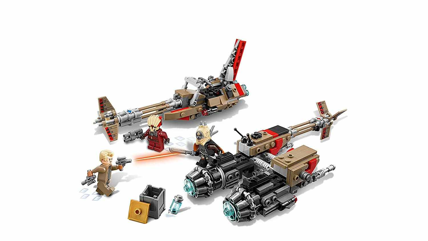 - Inclut 3 figurines : Tobias Beckett, Enfys Nest et Weazel ; comprend 2 swoop bike speeders profilés avec des cockpits miniatures ouverts et des fusils à tenons Un speeder est aussi équipé d’un side-car pour y ranger la boîte de coaxium incluse