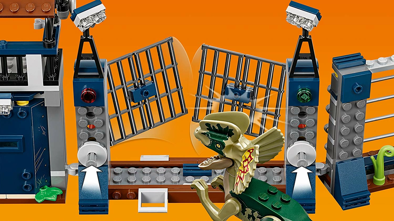 - Active les fonctions pour repousser le portail et le mur pour faire pénétrer le dinosaure !
