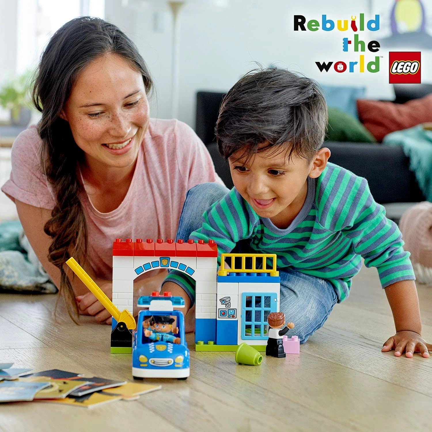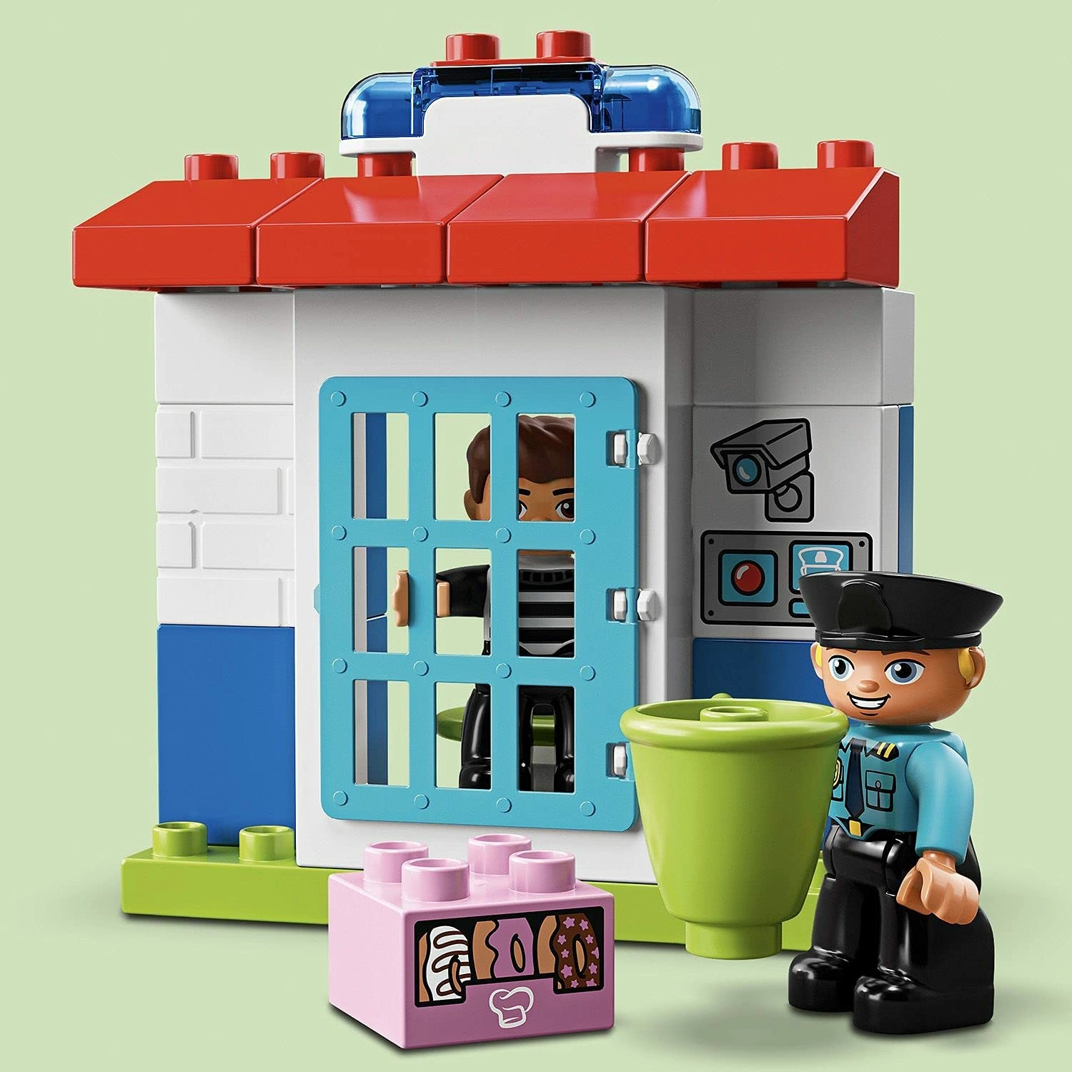 Rejouez des scènes de la vie réelle dans la ville LEGO® DUPLO® : un monde reconnaissable avec des figurines DUPLO modernes. Les enfants en âge préscolaire adoreront créer des histoires avec le jeu d’imitation au Commissariat de police facile à construire. Aidez les policiers à rouler dans la voiture de police avec des feux clignotants et une sirène sonore pour attraper le voleur en cavale avec les beignets du policier ! Puis ramenez-le au commissariat de police et enfermez-le dans la cellule de prison. Inclut 3 figurines DUPLO.