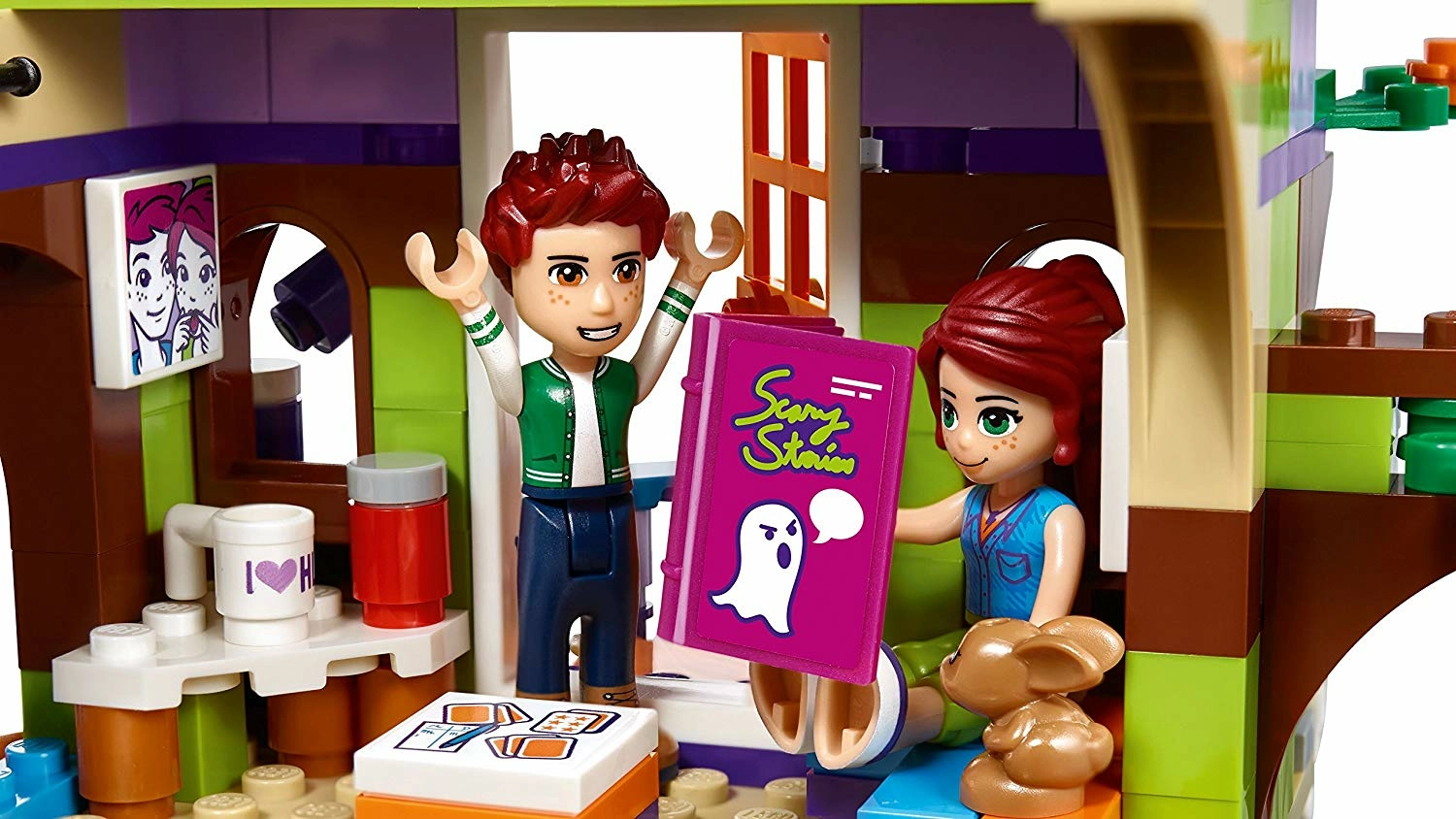 Le jeu de construction la cabane dans les arbres de Mia de LEGO Friends contient toutes les fonctions et détails pour créer et s'amuser pendant des heures avec Mia, son frère et tous les amis qui viennent leur rendre visite. Il y a une échelle pliante, un filet et une tyrolienne pour accéder au deuxième étage, un pistolet à eau, un livre d'histoires qui font peur, un jeu de société, une pizza, un équipement de sport, le skateboard de Mia et bien plus encore à l'intérieur.