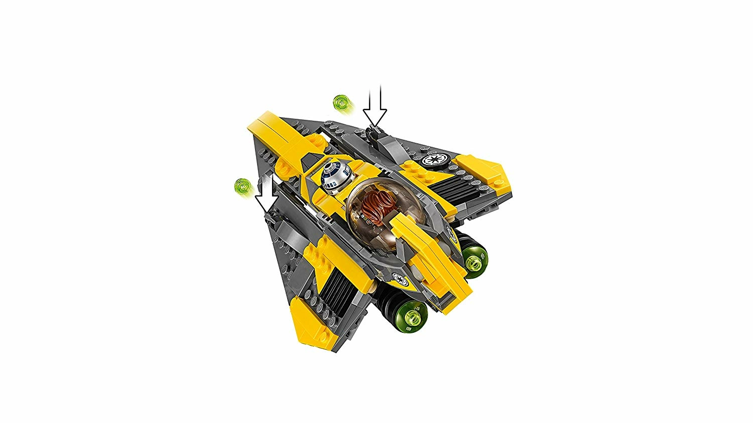 Le set Anakin’s Jedi Starfighter LEGO Star Wars 75214 vient compléter les collections LEGO Star Wars des jeunes Padawan. La forme profilée de cet intercepteur reconnaissable du film Star Wars : La Guerre des Clones comprend un train d’atterrissage rétractable, un cockpit miniature LEGO qui s'ouvre pour y installer Anakin, un système d'attache situé en dessous pour son sabre laser, un compartiment caché pour des munitions supplémentaires, de la place pour R2-D2 et des ailes équipées de fusils à tenons.