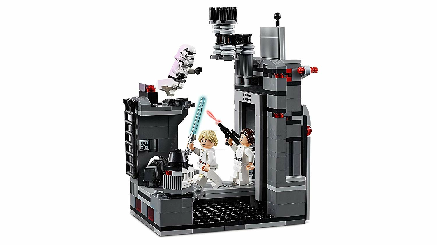 - Inclut 3 figurines : Luke Skywalker, la Princesse Leia et un Stormtrooper, plus un droïde souris LEGO Comprend un décor de l’Étoile de la Mort doté de charnières, avec une entrée, une porte qui se ferme actionnée par un levier, une passerelle rétractable et une section de pilier avec une plateforme, une échelle d’accès, un droïde souris caché, une boîte qui s’ouvre avec des électro-jumelles et une fonction pour envoyer le Stormtrooper tomber de la tour