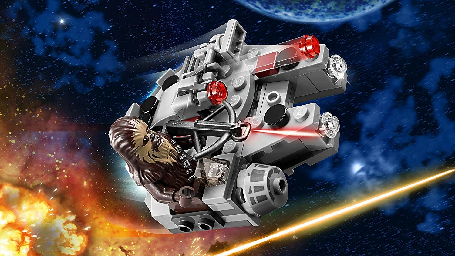- Construisez le Microfighter Faucon Millenium comprenant de nombreux détails authentiques, 2 fusils à tenons et un siège sur le dessus pour asseoir une figurine