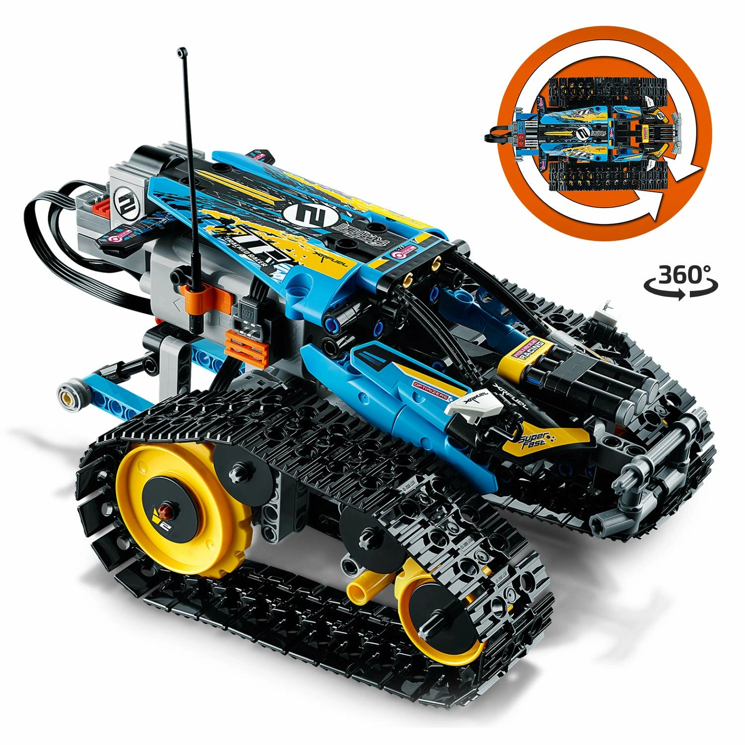 Faites des tours, des pirouettes et des cabrés à grande vitesse et traversez des terrains difficiles avec ce bolide télécommandé entièrement motorisé LEGO Technic 42095. Ce modèle robuste comprend des chenilles qui adhèrent au sol avec de grands pignons arrière pour une accélération optimale, ainsi qu'un design moderne avec des coloris jaunes et bleus et des autocollants décoratifs. Conduisez en marche avant ou arrière, vers la gauche ou la droite et faites des tours à 360º. Reconstruisez ce véhicule à chenilles télécommandé 2 en 1 pour créer un bolide télécommandé pour une double expérience de construction et de jeu.