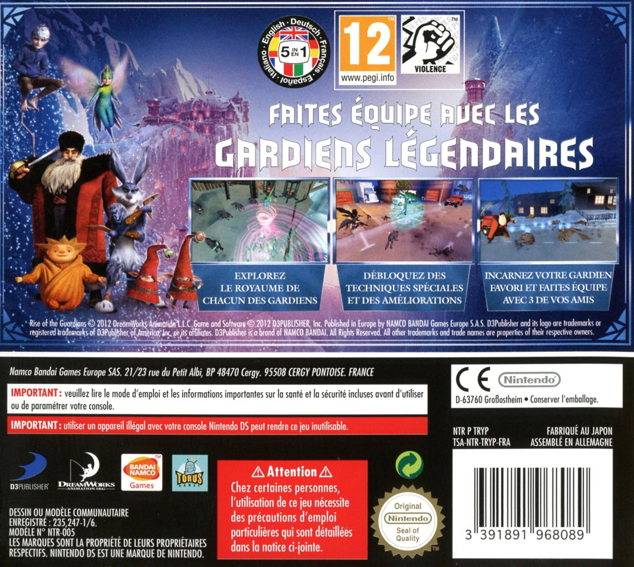Les Cinq Légendes est un jeu d'action sur DS. Adapté du film d'animation du même nom, le titre vous propose d'emmener les héros dans leur quête pour retrouver la foi des enfants face au vil Pitch. On gagne de nouvelles techniques en montant de niveau.