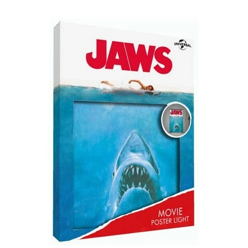 Illuminez votre mur avec ce poster-affiche rétro éclairé Jaws de format A4, qui représente l'affiche iconique du film.Fonctionne avec 2 piles AA & via cable USB (non incluses).