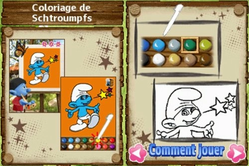 Les Schtroumpfs sur DS est un party-game proposant 6 mini-jeux et un mode histoire interactif. Le joueur décide des actions des protagonistes et est amené à réaliser divers défis afin de gagner des accessoires pour ses Schtroumpfs favoris.