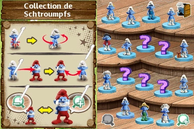Les Schtroumpfs sur DS est un party-game proposant 6 mini-jeux et un mode histoire interactif. Le joueur décide des actions des protagonistes et est amené à réaliser divers défis afin de gagner des accessoires pour ses Schtroumpfs favoris.