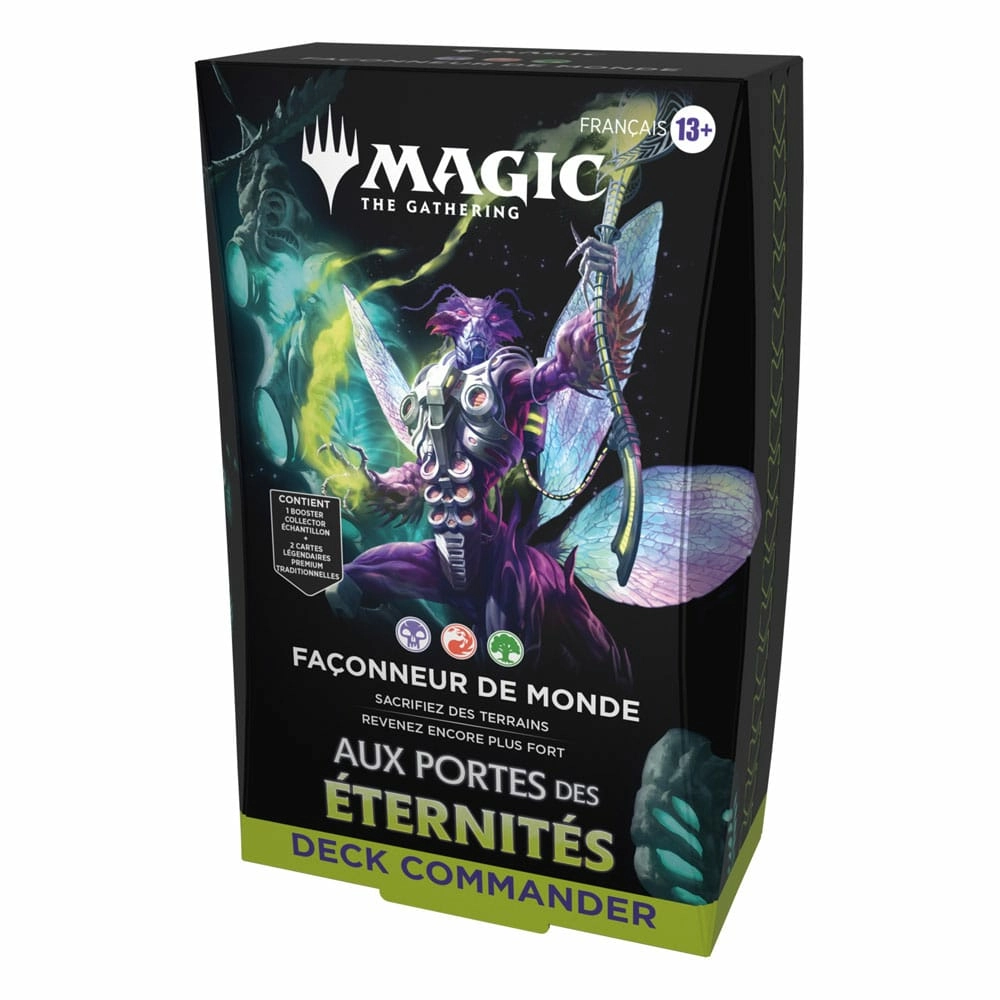Les decks Commander sont prêts-à-jouer dès l'ouverture de la boîte et contiennent tout ce dont vous avez besoin pour jouer au format multijoueurs le plus populaire de Magic. Aux portes des Éternités propose deux versions différentes du deck Commander.