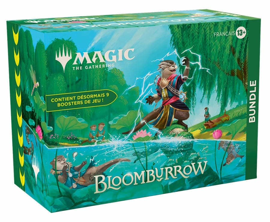 Dans Bloomburrow, Vallée est menacée par des forces élémentaires qui se déchaînent, et son salut repose sur les épaules de ses plus minuscules protecteurs. Les joueurs devront pénétrer de patte ferme dans ce monde, et combattre aux côtés de souris, de grenouilles, de chauves-souris, d'oiseaux et d'une myriade d'autres petites créatures pour restaurer l'équilibre de la paix et prouver que le courage n'est pas une question de taille.Le bundle est un cadeau idéal pour les super fans de Magic qui passent dans votre magasin. Il contient un peu de tout pour démarrer la collection d'un joueur . il renferme même un compteur de points de vie Spindown géant sur le thème de l'extension.Contenu:9 boosters de jeu Bloomburrow1 carte Premium traditionnelle avec une illustration alternative exclusive au bundle15 cartes de terrain de base Premium traditionnelles (5 pleine illustration)15 cartes de terrain de base non-Premium (5 pleine illustration)1 compteur de vie Spindown géant1 boîte de rangement de cartes2 fiches de référenceMerci de noter que les produits avec date de sortie officielle ne peuvent être livrés à temps pour la sortie que lorsque le montant de votre commande pour ces produits atteint le seuil pour expédition franco de port pour votre pays.