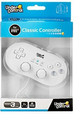 Manette classique Under Control pour Wii avec 2 joysticks analogiques 8 boutons d'actions 1 croix directionnelle Longueur du câble : 2 mètres.