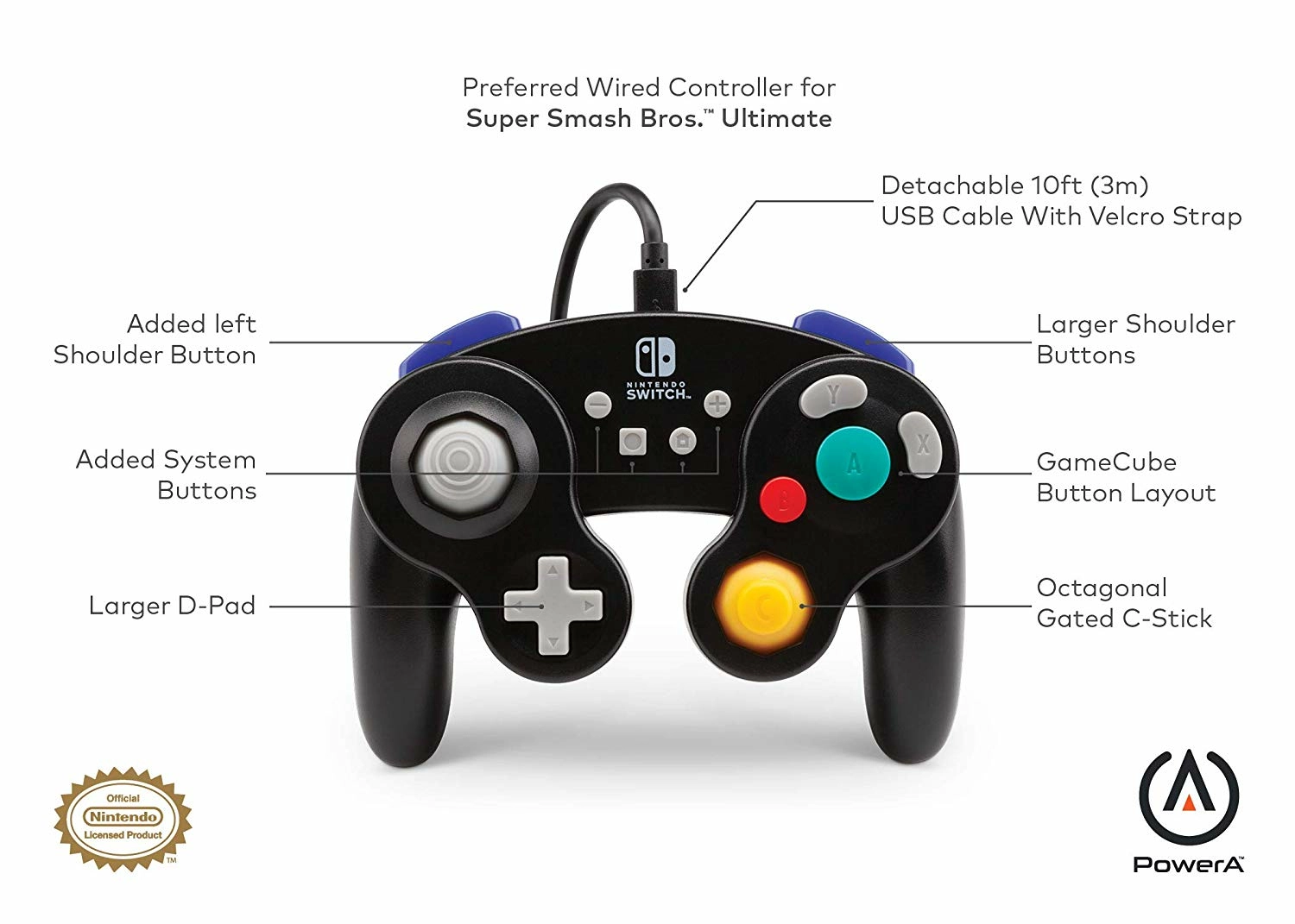 Manette Filaire GameCube Noire POWER A - Switch