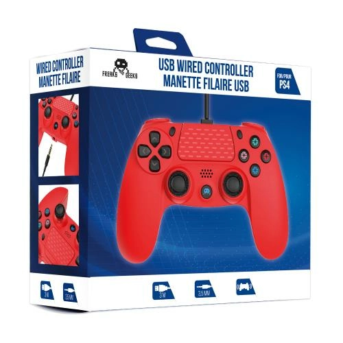 Manette filaire rouge pour ps4 avec câble 3m avec prise jack