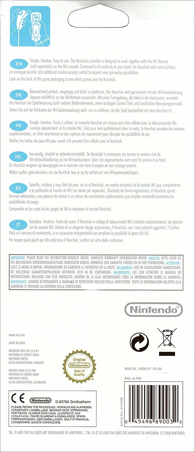 Facile a utiliser, intuitive la manette Nunchuk est conçue pour être utilisée avec la télécommande Wiimote (vendue séparément).