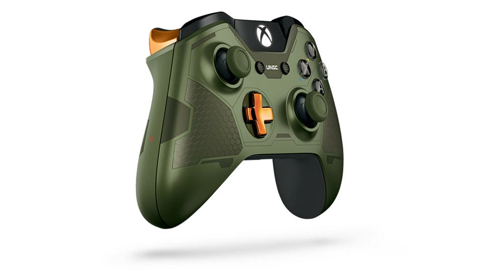 Parée de l'armure vert et orange métallisé du Major ainsi que de motifs gravés au laser et accompagnée d'un Lot Réquisitions comprenant la visière Dauntless. Cette manette sans fil édition limitée Halo 5 Master Chief exceptionnelle vous plonge encore plus profondément dans l'univers de Halo.
