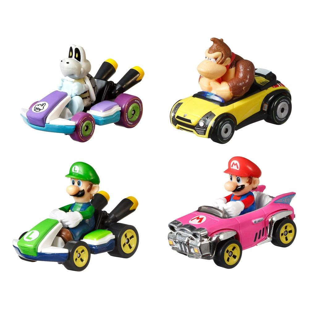 Mario kart hot wheels pack 4 véhicules métal 1/64 dry bones, donkey kong, luigi & mario