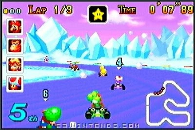 Mario Kart revient à fond les manettes dans le jeu de courses Mario Kart Super Circuit sur Gameboy Advance.