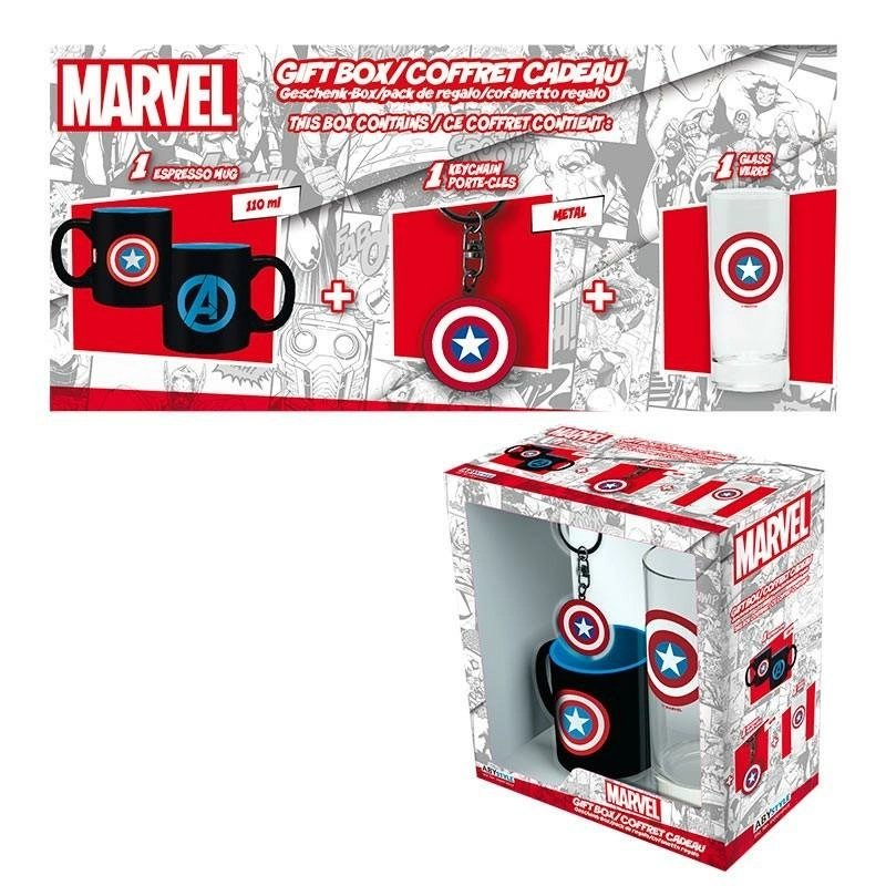 MARVEL - Coffret Cadeau Captain America Verre + Porte Cles + Mini-Mug