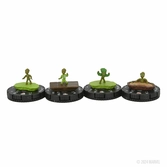 Pack "Booster Brick" de 10 boosters contenant chacun 5 figurines HeroClix avec cartes de personnages en anglais.