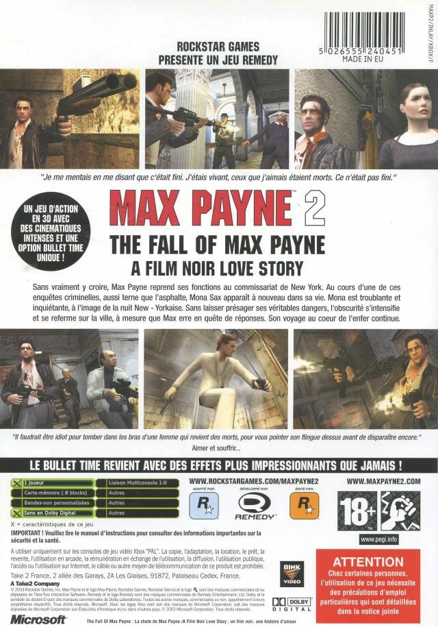 Max Payne 2 The Fall of Max Payne est un jeu d'action sur Xbox. Dans ce titre, le policier reprend du service au commissariat de New York. Mais au cours d'une de ces enquêtes, Mona Sax réapparait dans sa vie, troublante et inquiétante.
