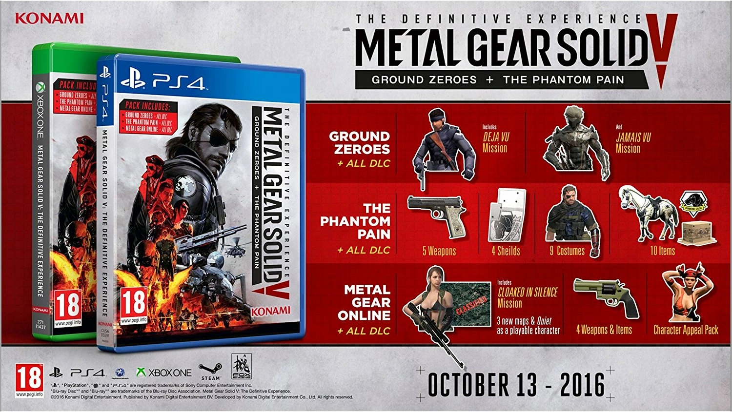 - Toutes les DLC de Ground Zeroes, The Phantom Pain et Metal Gear Online.
