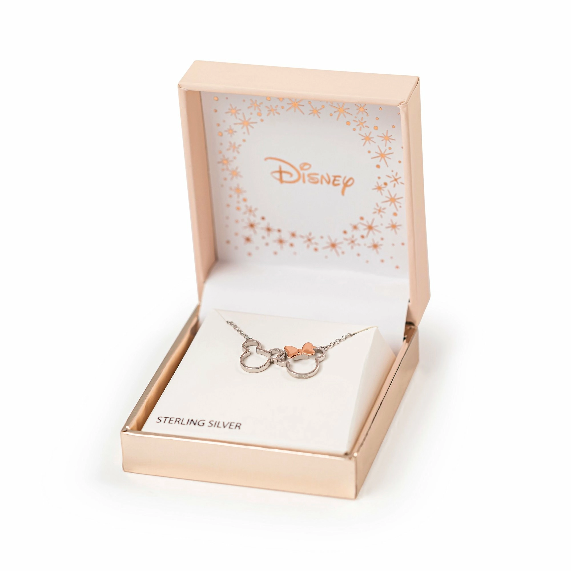 Collier Mickey & Minnie en Laiton Plaqué Argent & Rose Doré - Élégance et Romance DisneyAjoutez une touche de magie et de roman... Lire plus