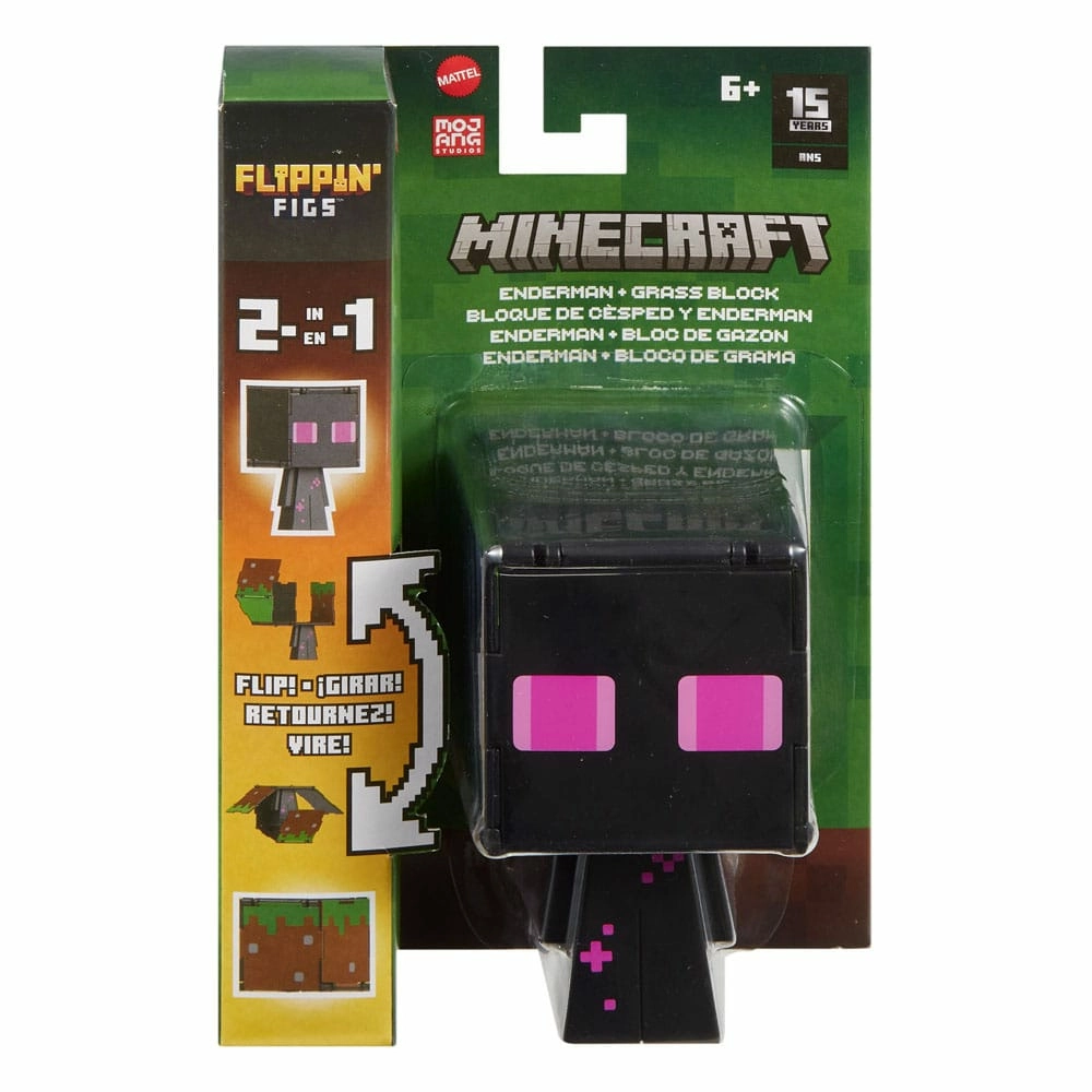 Minecraft figurine flippin enderman & bloc de gazon