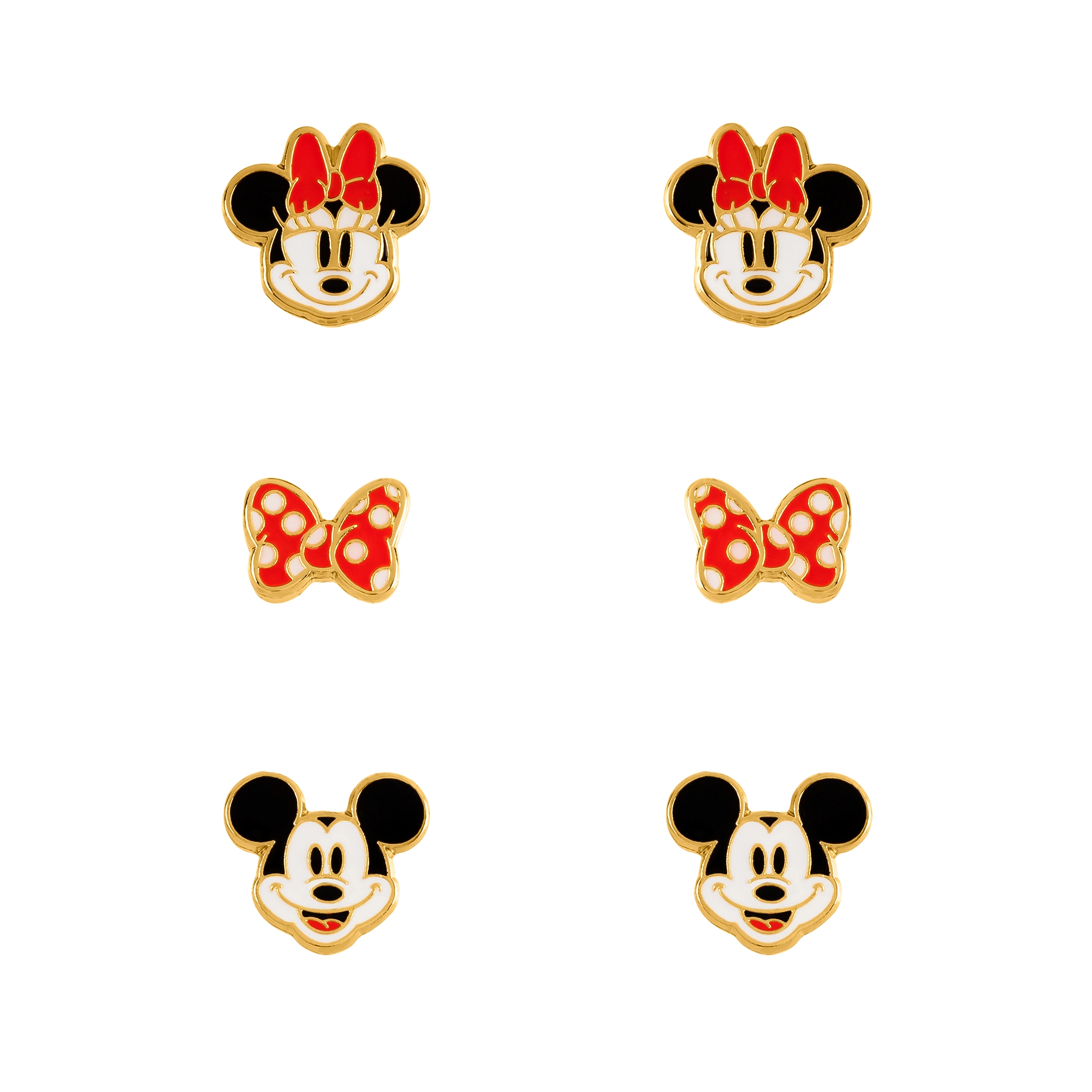 Minnie & mickey - 3 paires de clous d'oreilles - laiton plaqué