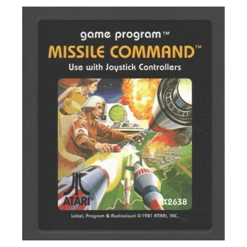 Missile Command est un jeu vidéo développé par Atari Inc., sorti en avril 1980 sur borne d'arcade. Il s'agit d'un shoot 'em up fixe prenant pour cadre une guerre nucléaire. Le joueur doit défendre des villes cibles de missiles balistiques à l'aide de batteries sol-air. (source : wikipedia)