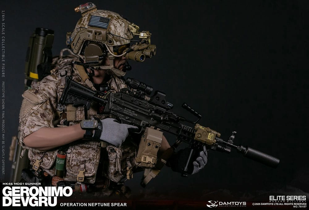 Sideshow et Damtoys sont fiers de présenter la figurine GERONIMO DEVGRU - MK46 MOD1 Gunner (Operation Neptune Spear) à l'échelle 6 !