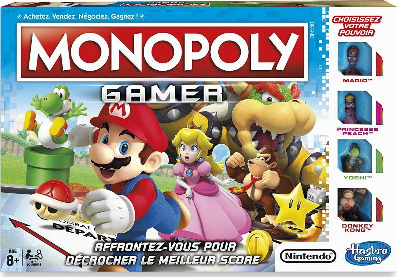 Redécouvrez ce grand classique du jeu de société avec un réel twist apporté par les personnages mythiques de Nintendo. Plus que de simples pions, chaque personnage issu de lunivers de Super Mario possède ses propres pouvoirs dans le jeu.