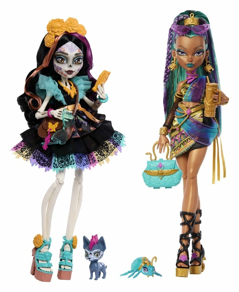 Voici Skelita Calaveras ! Cette poupée Monster High est un squelette effrayant et créatif originaire d'Hexiko. Elle dispose de sept accessoires lumineux et ensorcelants et possède un petit chien Xolo nommé Candelita. Les enfants à partir de 4 ans adoreront ajouter la poupée effrayante Skelita Calaveras à leur collection Monster High ! Entièrement articulée. La poupée ne tient pas debout toute seule. Sous réserve de modifications de couleur et de conception.