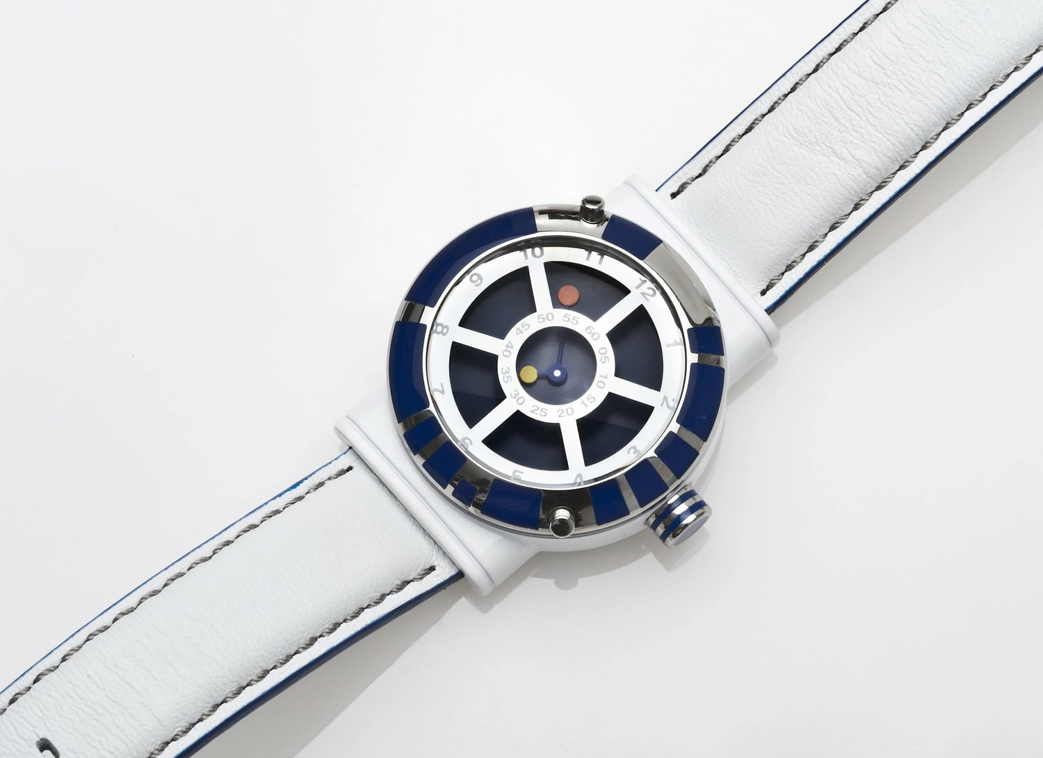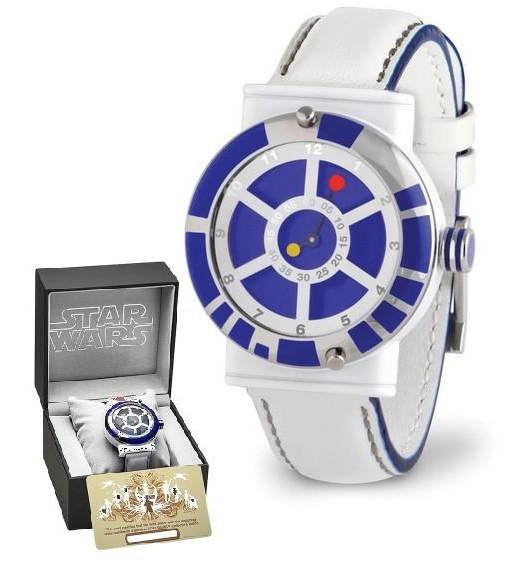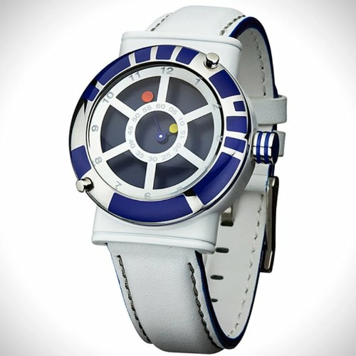 Cette montre de R2-D2 haut de gamme en édition limitée est un must have pour tout amateur de Star Wars. (Petit détail sympathique : Le cadran ressemble à R2 vu de dessus et le remontoir imite son projecteur holographique. Les aiguilles simulent son oeil radar et son indicateur de processeur..)