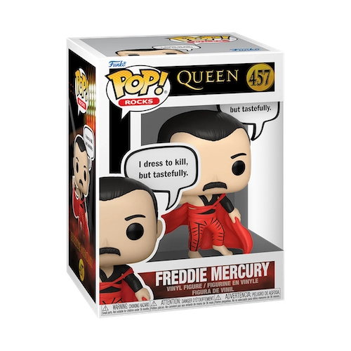 Faites entrer la chanteuse de Queen dans la salle ! Créez une expérience musicale inoubliable en accueillant POP ! Freddie Mercury sur la scène de votre collection. Cette figurine de collection POP ! Sayings comporte une bulle qui dit : « Je m'habille pour tuer, mais avec goût. » Avec qui cet artiste légendaire collaborera-t-il ensuite dans votre collection POP ! Rocks ? La figurine en vinyle mesure environ 11,4 cm de haut.